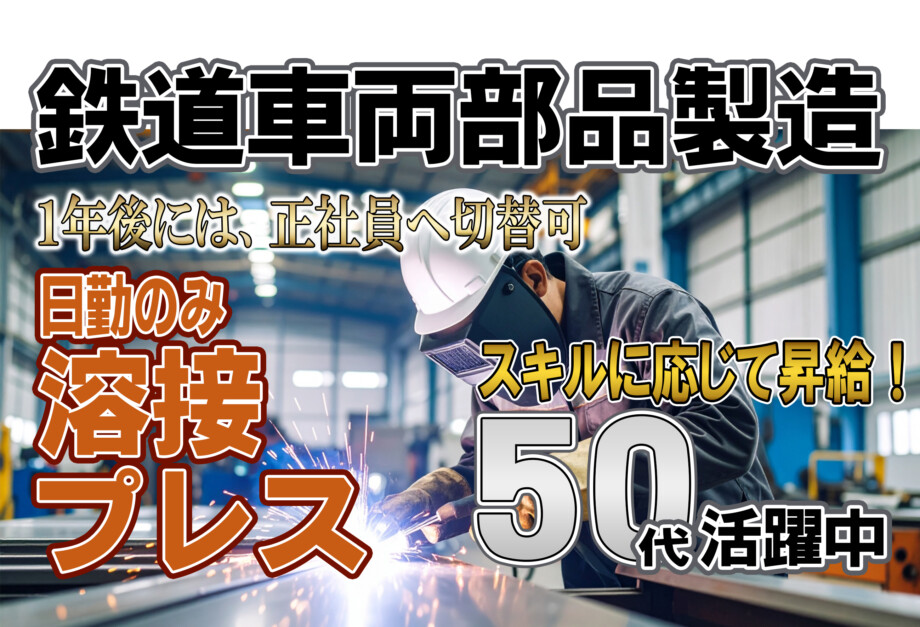 • 【各務原市/日勤のみ】★鉄道車両の部品製造業務 スキル次第で時給が上がります。最大時給1,875円♪【2025年11月21日更新】