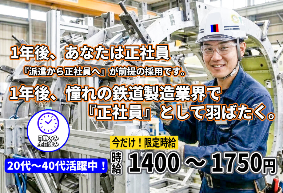 【各務原市/日勤のみ】今だけ時給1400円募集★鉄道車両の部品製造業務 スキル次第で時給が上がります。最大時給1,875円♪【2026年3月30日更新】